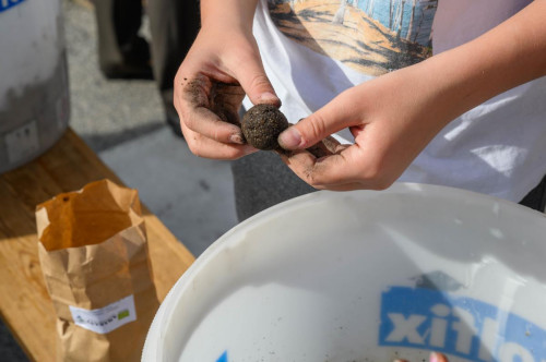 »Letos smo posadile precej rastlin, tamle imamo origano, meto, meliso, ameriški slamnik in celo nekaj grmovnic je bilo,« je delo pridnih čebelark opisala Joži Pevec. »Pripravile smo tudi gomoljnice dalij«, je z navdušenjem razlagala članica upravnega odbora v stiškem čebelarskem društvu, medtem ko je radovednim obiskovalcem nakazovala, kaj vse ponuja njihova stojnica. Več kot 400 vrečk s semeni medovitih rastlin in približno 150 sadik so čebelarke po slabi uri že skoraj v celoti razdelile med mimoidoče na čebelarski ulici. Zvočna kulisa, ki so jo pesmijo priredili učenci okoliščih osnovnih šol, je popestrila pogovor s čebelarko: »Prav je, da na takšnem dogodku predstavimo, kako pomembno je, da v času naravnih katastrof ljudje tudi na svojem vrtu posadijo medovite rastline«. S tem čebelam omogočijo, da dobivajo naravno hrano. Zato pa je na stojnico prišlo tudi nemalo čebelarjev, ki medovite rastline nasadijo okrog čebelnjaka. »Za čebele je ključno, da se zadržujejo v okolici panjev in hrane ne iščejo daleč stran,« je svoje izkušnje sklenila Pevec in na stojnico že sprejela naslednjo vedoželjno obiskovalko.